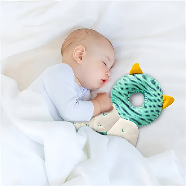 Ця м’яка та ніжна подушка для голови дитини може бути розслаблюючим товаришем для дитини під час денного сну та ночі. Дихаючий та м’який матеріал є ніжним до шкіри дитини, забезпечуючи комфорт та затишок. Ця знайома та затишна присутність допомагає заспокоїти дитину, роблячи її розслабленою та легкою для засинання.
