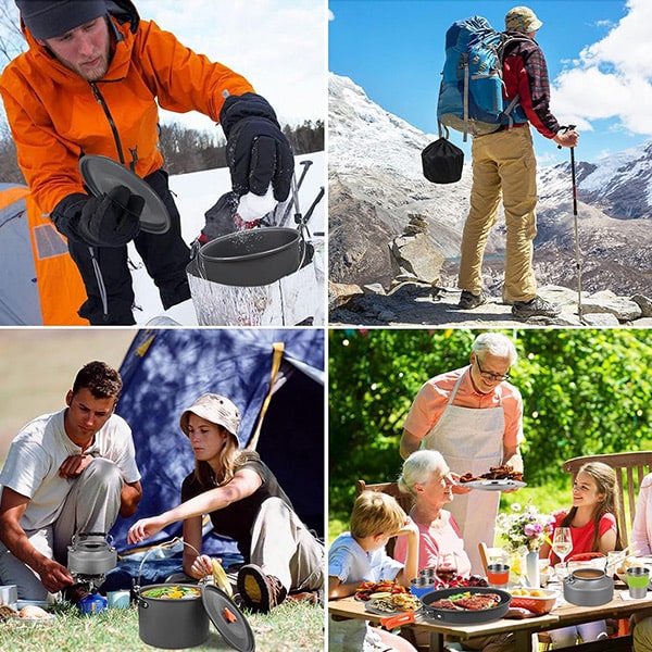 Готуйте де завгодно з цим універсальним, компактним та легким набором посуду, ідеальним для дому, подорожей та пригод на відкритому повітрі.