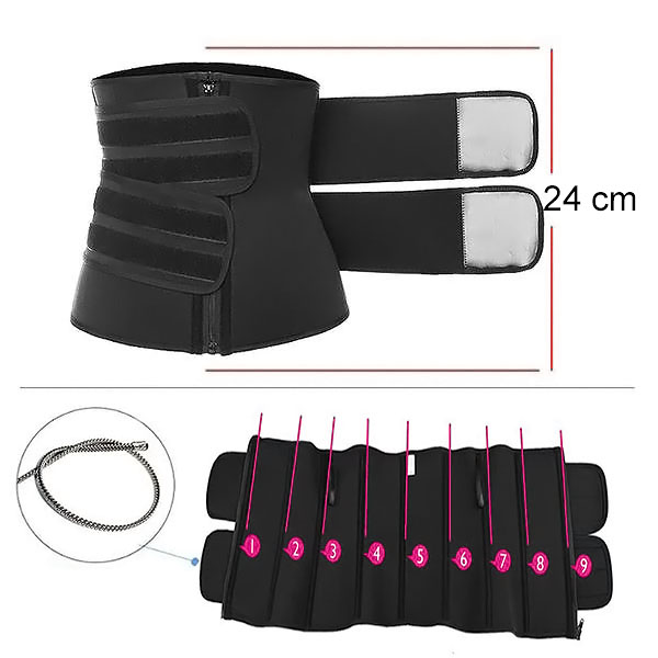 Оснащений двома міцними регульованими застібками на липучках, які забезпечують значну підтримку та покращують компресію в області живота та талії.