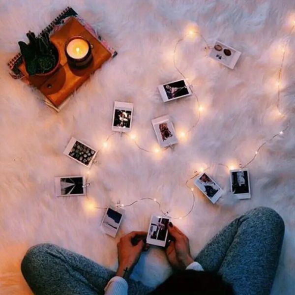 Ліхтарики з прищіпками для фотографій можна вставити в вазу або використовувати для підвішування фотографій у спальні, на весіллях, різдвяних або день народження.