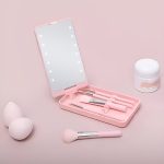 Набір кистей та дзеркало з LED-підсвіткою ідеально поміщаються у вашу сумку, тому ви можете легко поправити макіяж, куди б ваш день не завів.