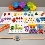 Кольорові намистини, текстури та інструменти залучають зір і дотик, поглиблюючи розуміння математики на ранньому етапі.