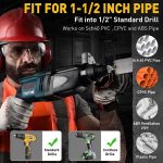 Просто приєднайте до будь-якого стандартного дриля — не потрібні спеціальні інструменти. Ідеально підходить для труб із ПВХ, міді, алюмінію та нержавної сталі.