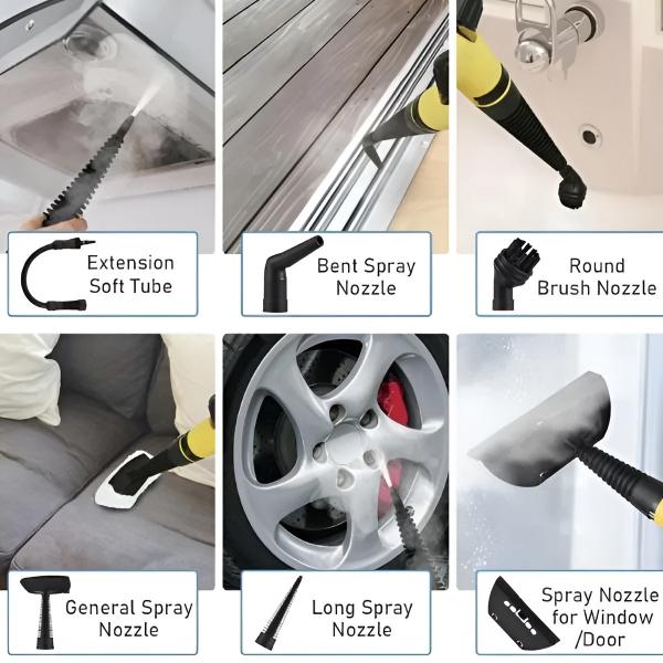 Включає щітки, насадки та подушечки для очищення підлог, швів, вікон та іншого.
