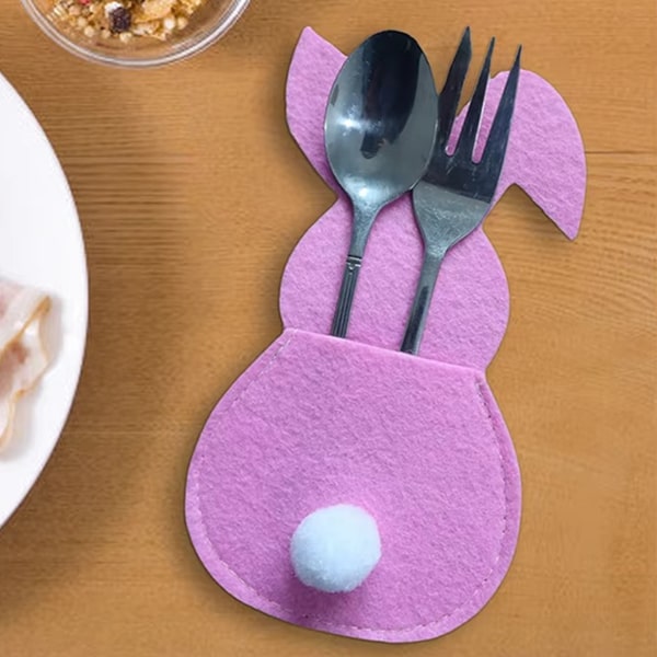 Матеріал: Високоякісний фетр Розміри: 15 x 8,5 см Кольори: Блакитний, рожевий, жовтий, фіолетовий Комплектація: 4 x Підставки для столових приборів у формі кролика