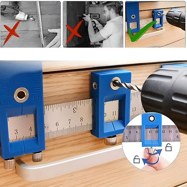 З регульованим лінійком, який дозволяє швидкі вимірювання та легкі налаштування, ви можете легко розмістити точки для свердління. Чи працюєте ви з деревом, металом чи пластиком, рухомі індикатори та міліметрова шкала роблять розміщення простим.