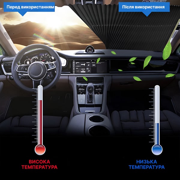 Наш товар ефективно блокує шкідливі УФ-промені, запобігаючи перегріву та деградації вашого автомобіля. Це допомагає підтримувати прохолоду в салоні та значно зменшує пошкодження сидінь і приладової панелі вашого автомобіля.