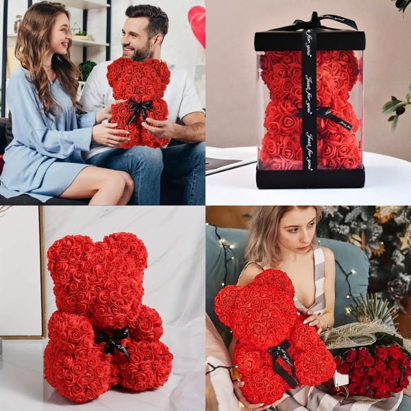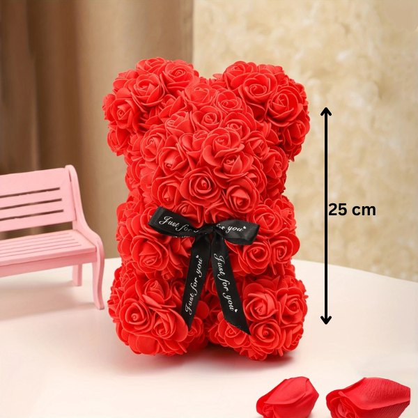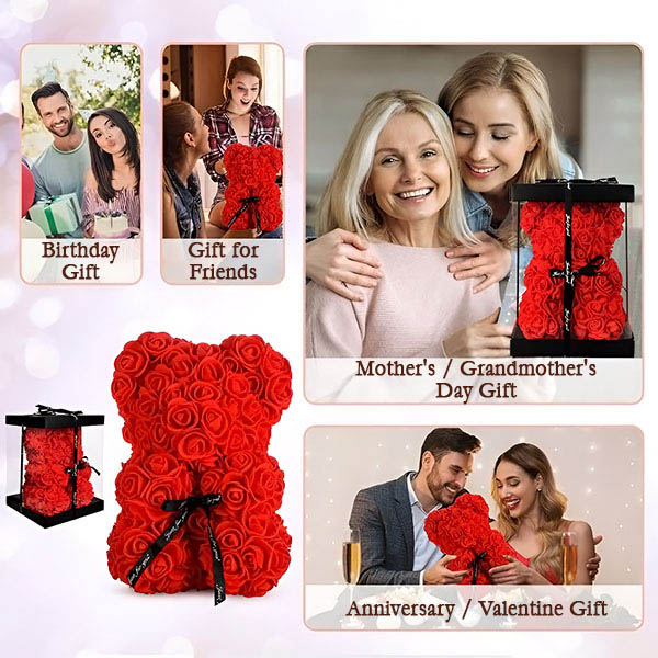 Цей ведмедик додає елегантності в будь-який простір. Чи то на приліжковому столику, полиці, чи в кутку вітальні, його м’який дизайн і прекрасні троянди освітлюють будь-яку кімнату, створюючи вражаючий фокус, що покращує інтер’єр.