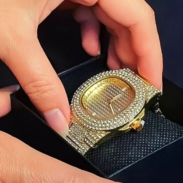 Тисячі блискучих кристалів перетворюють цей годинник на витвір мистецтва. Це не просто годинник: це смілива заява про розкіш та елегантність.