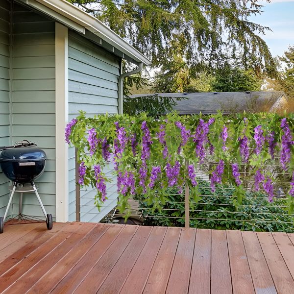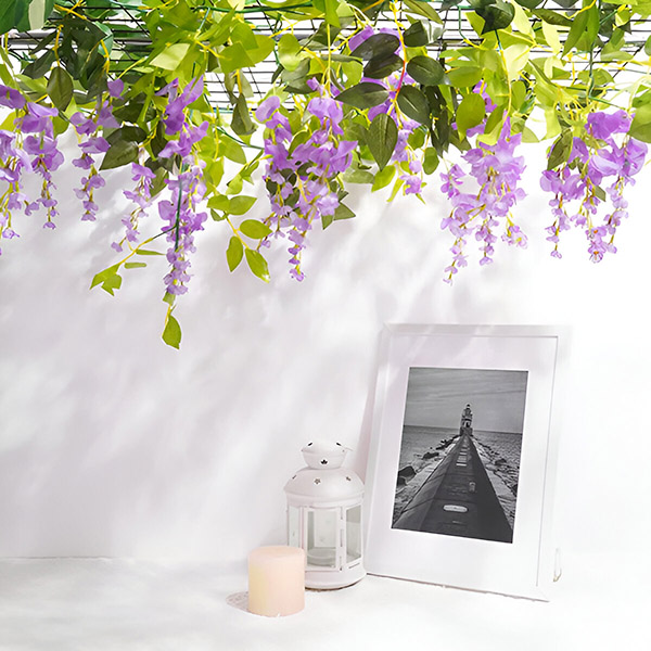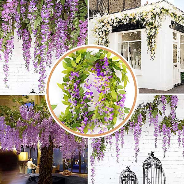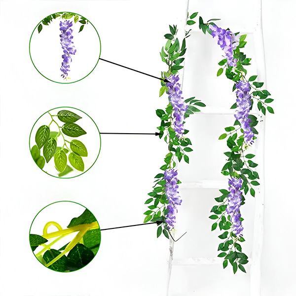 Не потрібно мати справу з ліанами або квітами, які бліднуть та в’януть. Наша імітація гліцинії виготовлена з високоякісної шовкової тканини та гнучкого пластику, щоб забезпечити їхню вічну життєздатність. Ці стійкі квіти розроблені для тривалого використання, пропонуючи красиве та довговічне декоративне рішення.